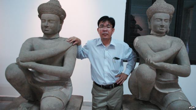 The Duryodhana statue is one of three returned to Cambodia from the United States in early June, Phnom Penh. (Robert Carmichael/VOA)